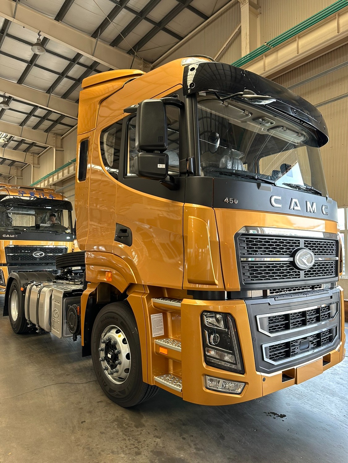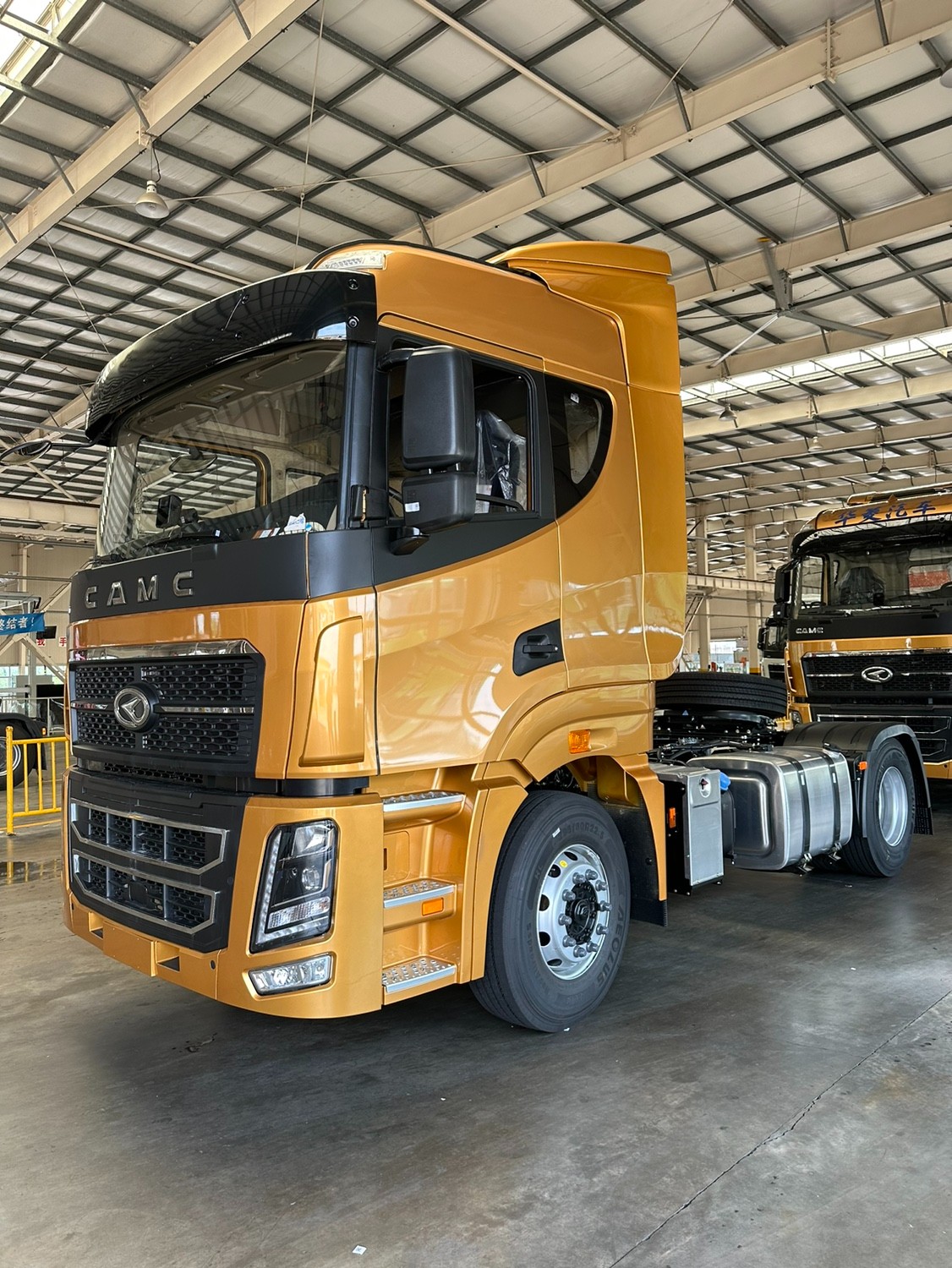 CAMC 4×2-1 tractor truck is a kind of semi-trailer truck for transporting heavy goods. It uses towing engine and an additional semi-trailer to carry or transport heavy goods like container, cars, stones, etc. This truck tractor head